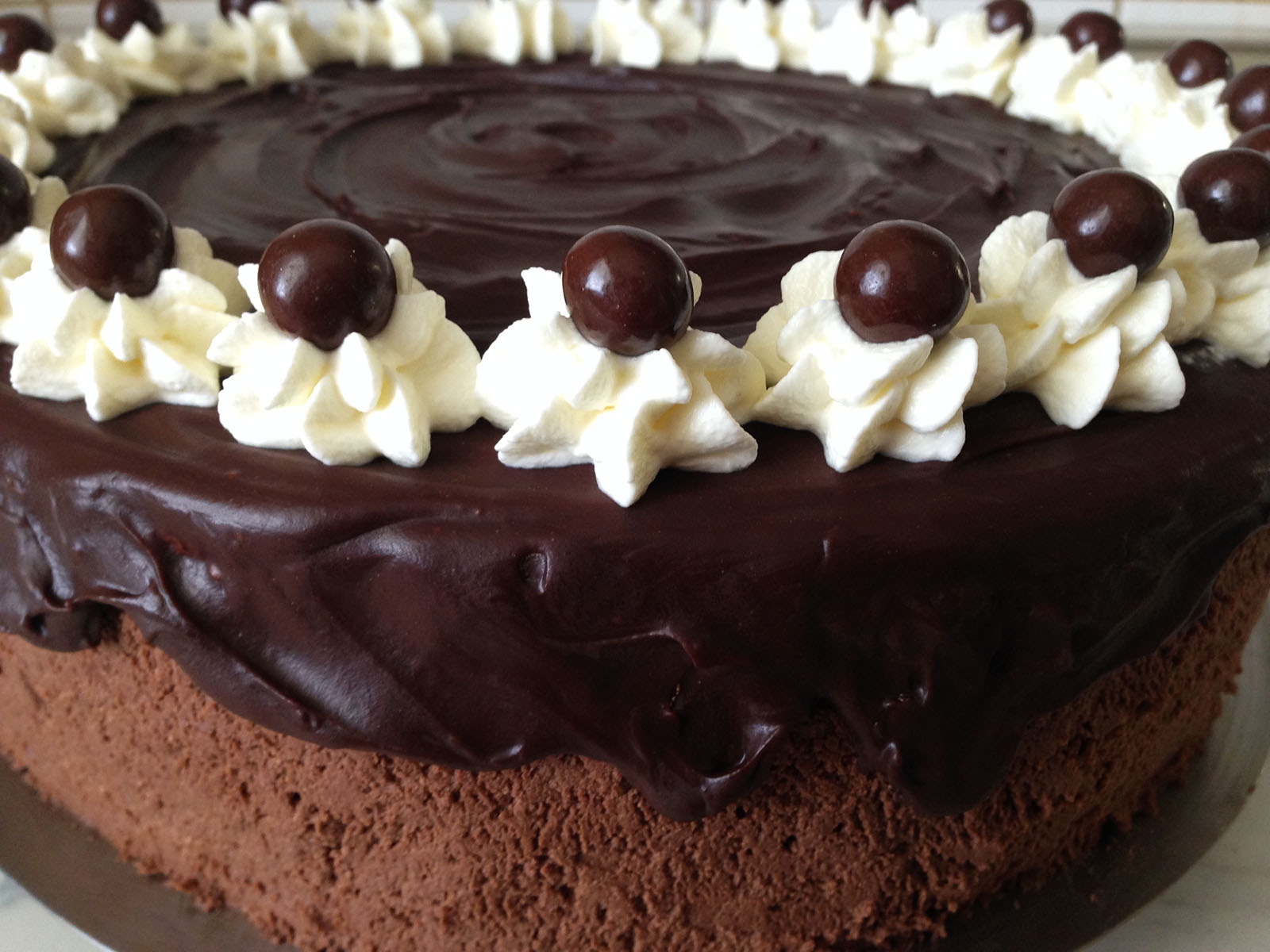 Včasih je treba speči tudi kakšno dobro staro klasiko kot npr. čokoladno torto. :) Spekla sem dva temna in en svetel biskvit ter jih dopolnila s čokoladno kremo. Nato sem celo torto še premazala s čokoladno kremo in po vrhu oblila s čokoladnim ganašejem.