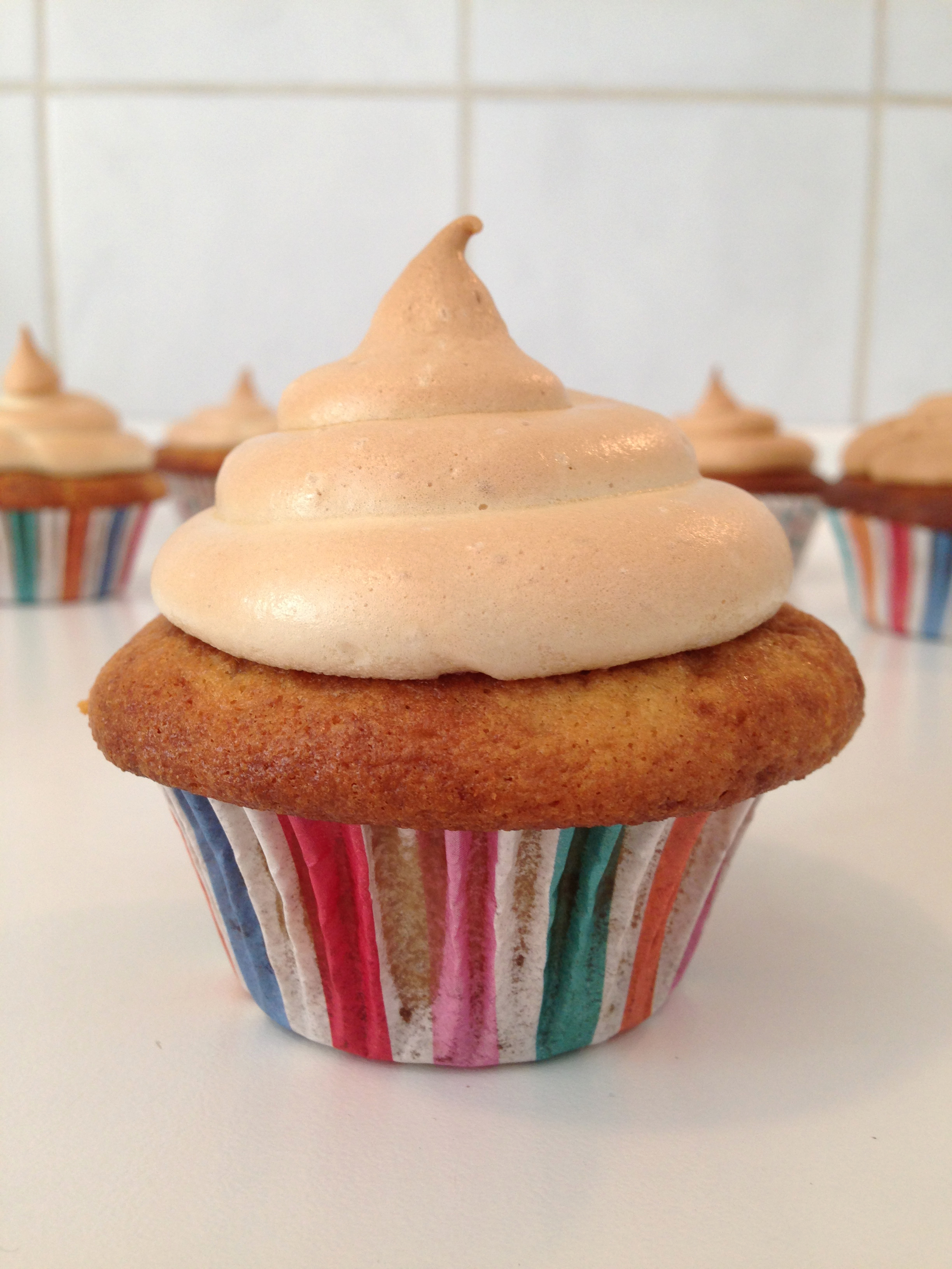 Zadnje čase iščem nove recepte za frosting. Maslena krema mi niti približno ni dobra, kremnega sira pa pojem veliko preveč. :P Eden od alternativ je beljak, ki sem ga prvič uporabila v tem receptu. Kaj fino je uspelo. :)